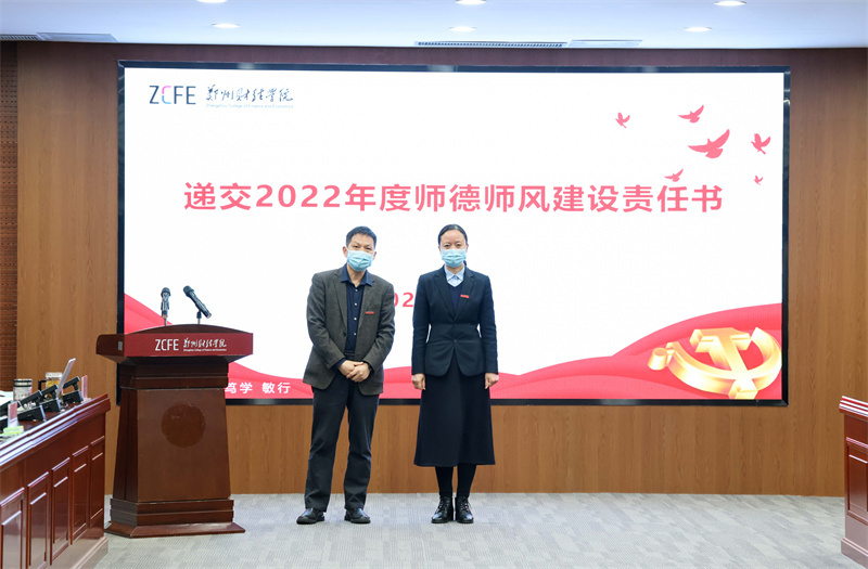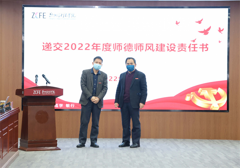 随后,学校职能部门、二级学院负责人代表分别向校长王能民递交《2022年度师德师风建设责任书》。