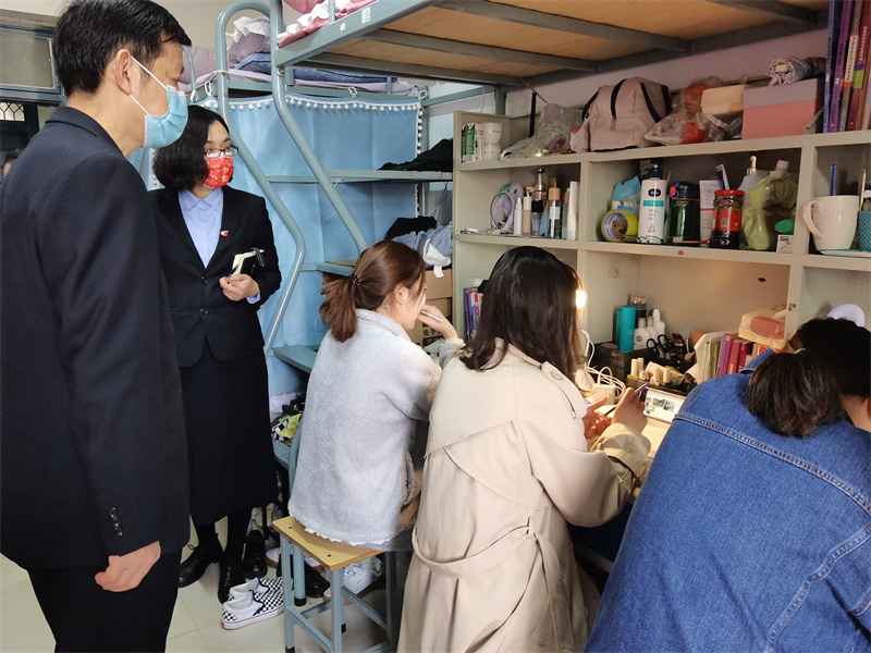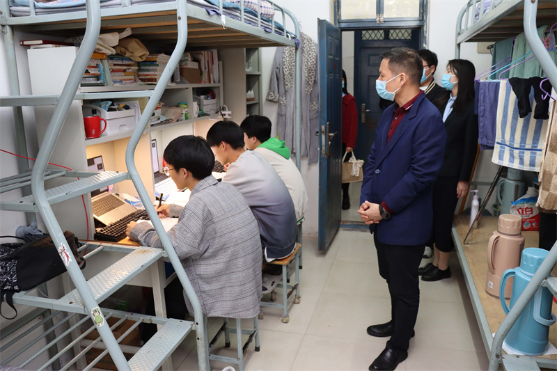 校党委书记李国强、校长王能民等校领导班子成员带队开展校内巡查,并深入学生宿舍,亲切询问大家的学习生活情况,叮嘱同学们要严格遵守疫情防控要求,做好自我防护,正确佩戴口罩,遇到困难要第一时间向辅导员和学院反映。鼓励同学们要增强“心理免疫力”和“身体免疫力”,既要保持理性和乐观向上的心态,又要锻炼身体、增强体魄,坚定“坚持就是胜利”的信心。