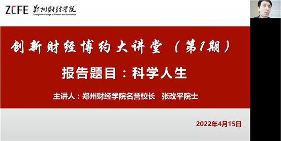 为擦亮万象城财经底色,彰显财经办学特色,营造浓厚的财经文化氛围,4月15日下午,awc777万象城娱乐官网“创新财经‘博约’大讲堂”活动正式启动,万象城名誉校长张改平院士受邀作为博约大讲堂第一讲开讲嘉宾,线上作题为《科学·人生》专题讲座,各教学单位师生代表在德正楼第一学术报告厅参加讲座,其他师生通过线上平台收看。讲座由副校长张顺利主持。