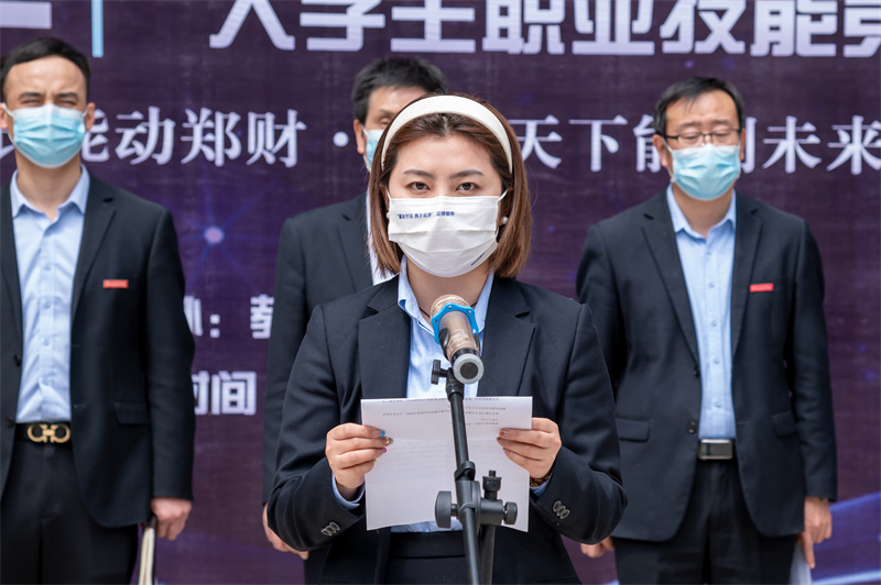 金融学院教师张夷菲和19级投资学本科1班宋袁梦同学分别作为指导教师、参赛学生代表进行发言。张夷菲老师对学校积极为学生搭建展示技能的平台表示感谢,她指出通过此次竞赛一方面可以“以赛促学”,在学生中形成勤练技能、学好技能的优良氛围;另一方面可以“以赛促教”,促进学校切实加强技能教学,全面提高教学质量。宋袁梦同学表示,此次“卓越杯”大学生职业技能竞赛的举行拓宽了学生学习专业技能的平台,有利于提高学生实践动手能力和综合素质。