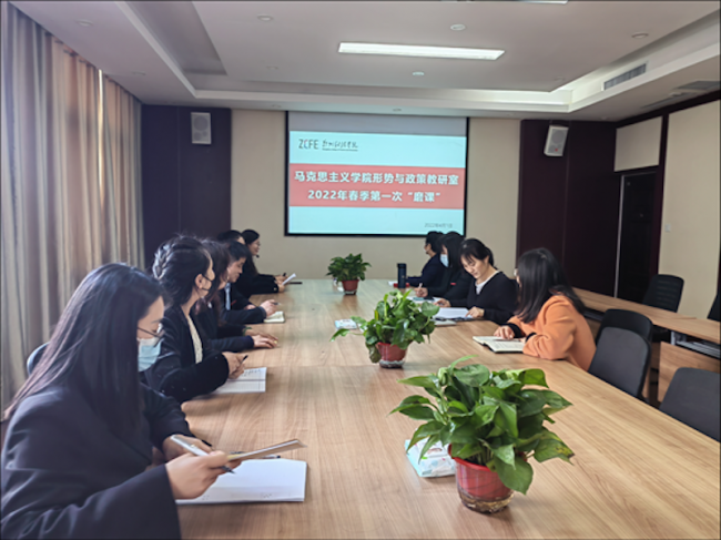 针对部分思政课教师对意识形态工作的极端重要性和形势复杂性的认识、把握还比较浅表化,对社会上暗流涌动的一些错误思潮和观点还缺乏应有的政治鉴别力和敏锐性,马克思主义学院坚持每周二下午进行不少于1小时的理论学习。内容包括习近平总书记系列重要讲话、党的创新理论、思政专题片、政治理论知识问答等,采取个人自学、集体学习、小组研讨、微信公众号推送等多种方式进行。