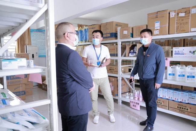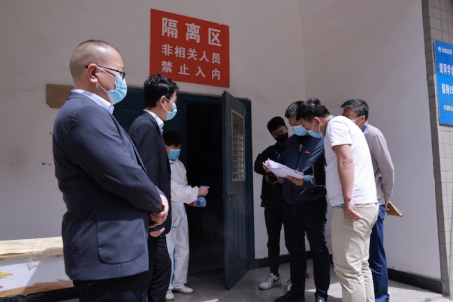 督导组成员实地查看了学生食堂、校医院、隔离区、防疫物资储备室、入校快递(货物)集中消杀区等地,听取陪同人员汇报万象城防疫工作的开展情况,并查阅相关记录,详细了解疫情防控各项措施和具体做法。