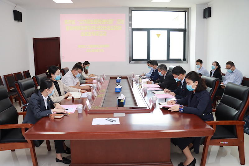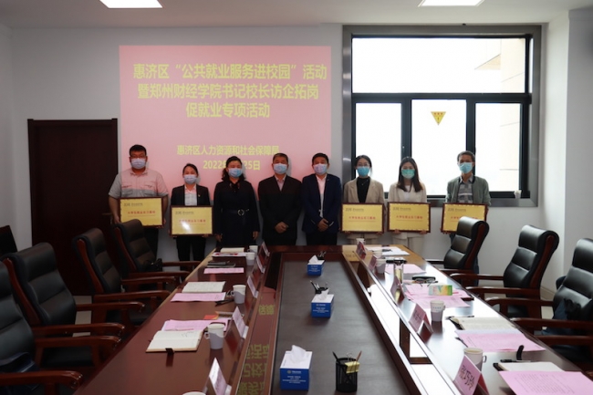 聚力“政校企”,凝心促就业 。4月25日上午,惠济区“公共服务进校园”活动暨郑州财经学院书记校长访企拓岗促就业专项活动在惠济区人社局617会议室举行。
