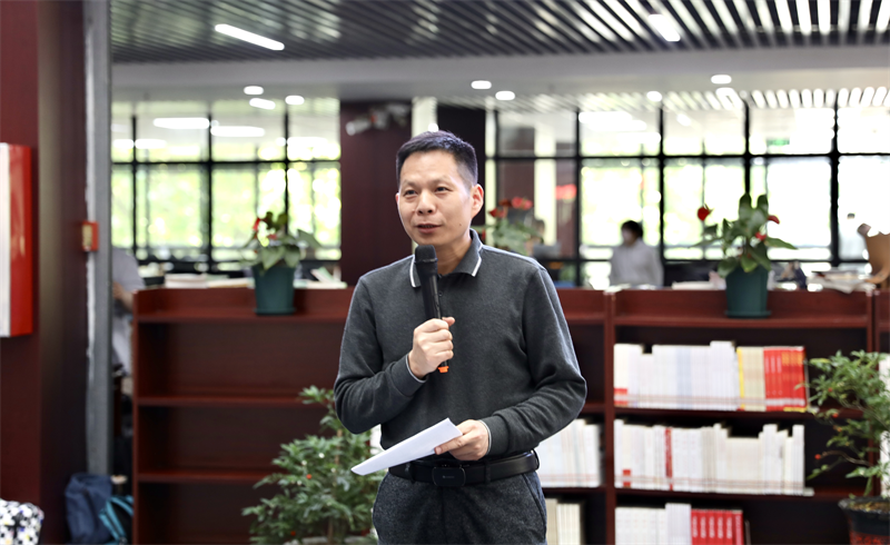 “借书状元”黄凤玲分享了读书对自己的重要性,阐明了读书带给自己的收获和成长,呼吁同学们走进图书馆多读书,读好书。“优秀阅读推广人”宋浩天宣读《书籍,春风,还有你——给读者的一封邀请信》,介绍了本次读书节期间图书馆的各项阅读推广活动,并呼吁大家走进图书馆,把自己沉浸在书里,沉浸在图书馆里,让图书馆成为大家心灵的家园。
