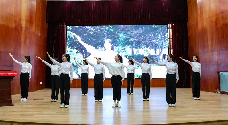 在《光荣啊,中国共青团》手势舞展示中,十位表演者以律动传递力量,用双手表达信心,从手臂到手指舞动的瞬间,感受到力量,传递出爱国之情,赢得现场阵阵掌声。