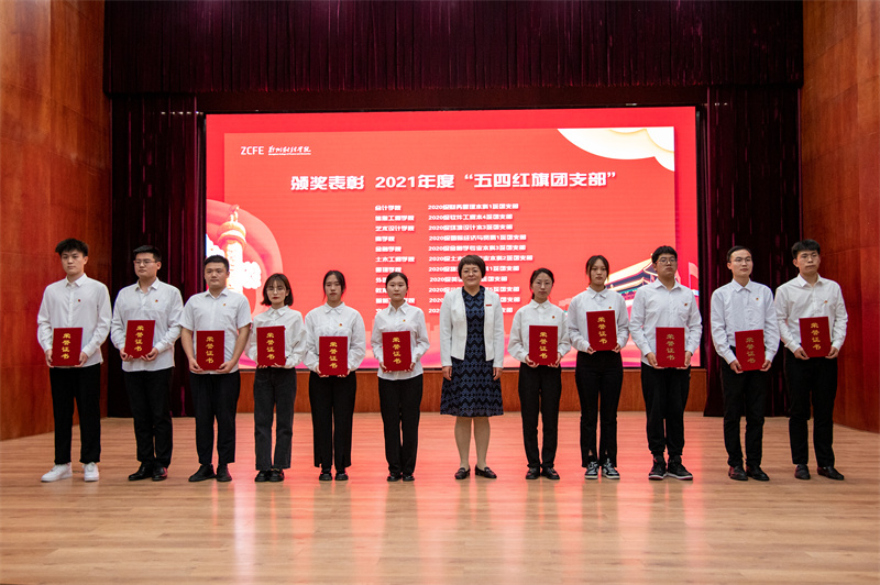 校党委副书记董学力为“五四红旗团总支”颁奖