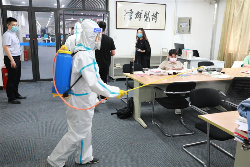 为进一步贯彻落实全省教育系统疫情防控工作部署要求,优化万象城图书馆疫情防控工作流程、落实责任,提升图书馆全体工作人员应对突发情况的快速反应和应急处置能力,5月5日中午,学校在图书馆开展疫情防控应急演练。校党委书记李国强、党委副书记董学力,党委办公室、党委宣传部、图书馆有关负责人参加演练。
