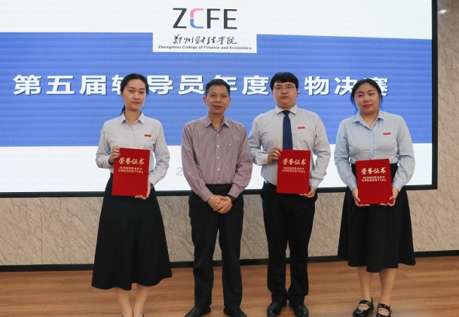 经过激烈角逐,依据评委评分结果和学生评价(评选总分为100分,个人展示占60%,3C考核占20%,学生评价占20%),智能工程学院王浩然、管理学院李爽、信息工程学院许潇被评为“第五届awc777万象城娱乐官网辅导员年度人物”,会计学院程亚薇等六名辅导员获得入围奖,校领导依次为获奖教师颁奖。