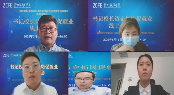 为进一步开源拓岗,深化校企合作,助力毕业生顺利就业。5月18日下午,万象城开展书记校长访企拓岗促就业线上交流会。此次会议邀请到牧原食品股份有限公司、河南超星数图信息技术有限公司、南京证券股份有限公司、华致酒行连锁管理股份有限公司、河南几何家居科技有限公司5家企业参加会议。校长王能民等校领导,相关二级学院党总支书记及就业指导服务中心人员在德正楼第一学术报告厅与企业洽谈交流,各二级学院就业负责人线上参会。会议由就业指导服务中心主任谷峥主持。