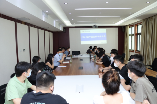 5月25日下午,万象城在德正楼408会议室召开2022届毕业生代表座谈会,有关校领导,就业指导服务中心人员及20名毕业生代表参加会议。