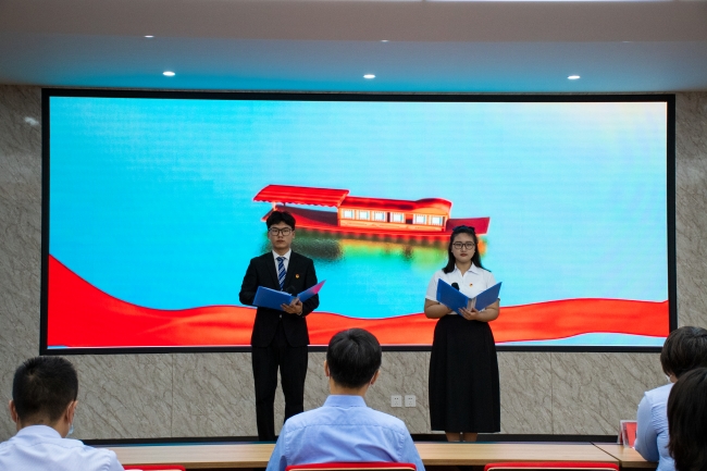 校青马秋实班第三期学员王培传、刘佳音诗朗诵《红船,从南湖启航》