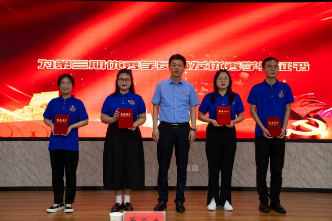 校党委副书记董学力为校青马秋实班第三期优秀学员代表颁发证书