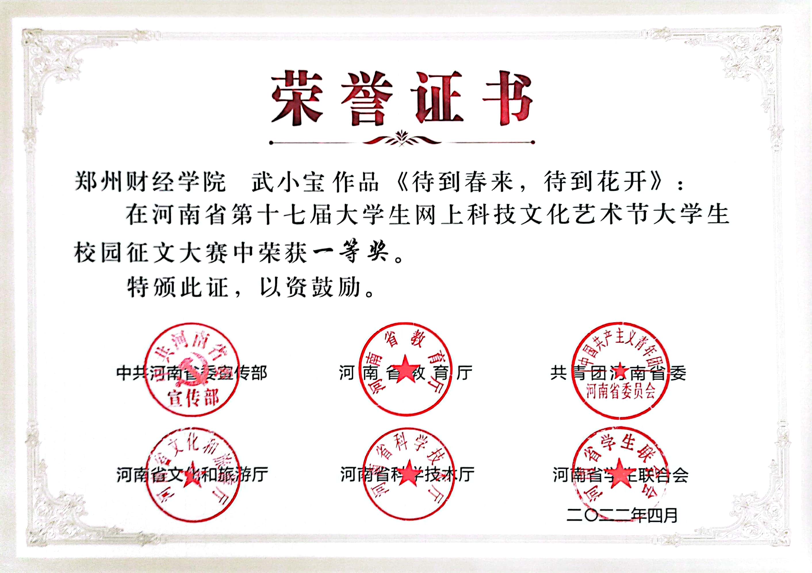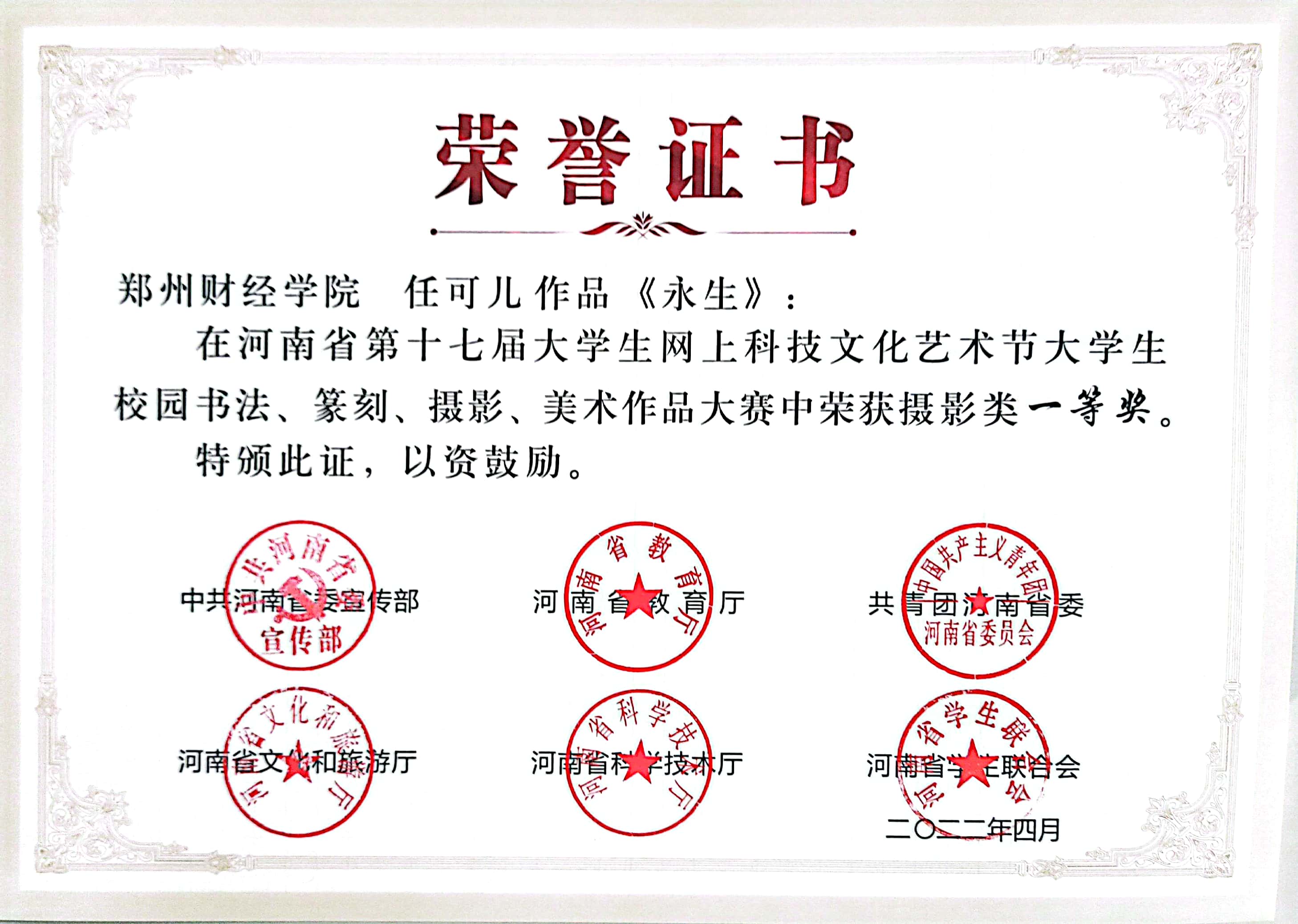 日前,河南省第十七届大学生网上科技文化艺术节获奖作品(个人)和优秀组织单位名单发布,其中,万象城学子斩获一等奖3项、二等奖7项、三等奖11项,1名教师获得优秀导师奖。