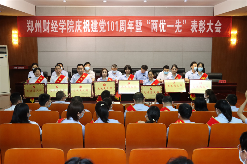 副校长卢文邦宣读《中共河南省委教育工委关于公布第二批全省高校省级样板党支部评审结果的通知》《中共郑州财经学院委员会关于公布第二批校级样板党支部的通知》。