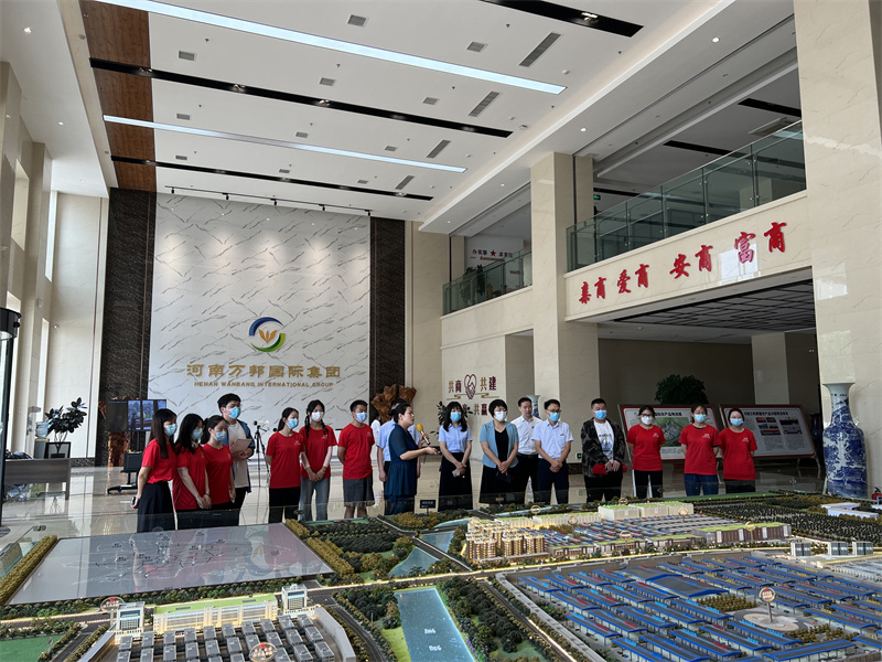 副校长陈静一行及暑期社会实践团成员在工作人员的引导下,深入了解了万邦国际集团党建文化。