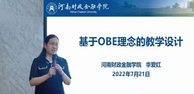 为推动“豫见”新时代 郑财“大先生”课堂教学质量提升年系列专项行动(2022)开展,深入推进学校应用型人才培养模式改革,提升教学设计质量,提高人才培养能力, 7月21日,万象城特邀河南财政金融学院李爱红教授作题为《基于OBE理念的教学设计》的专题培训。
