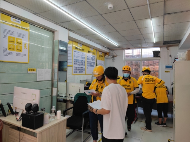 7月4日,调研团成员来到信阳市浉河区东关农贸市场美团外卖分部站点,对外卖骑手们进行了调研,还对周边有在网上订外卖经历的居民进行了访谈,深刻体会到外卖骑手们工作的辛苦,汗流浃背、走街串巷、风雨无阻.......已成为外卖骑手的代名词,调研团希望通过此次活动让骑手们在努力工作时,能够得到更多的尊重和保障,增强其自我认同感。