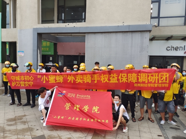 管理学院“小蜜蜂”外卖骑手权益保障调研团将牢记党和国家的初心与使命,赓续郑财人“厚德、砺志、笃学、敏行”的校训,展现出当代青年的责任担当、青春奉献。