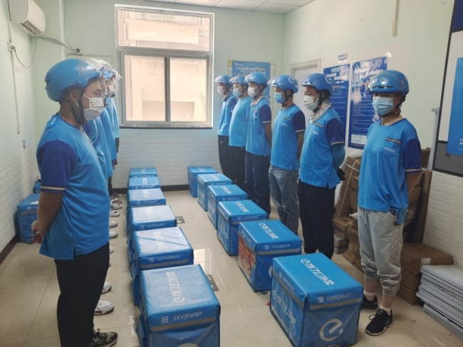 7月5日,调研团来到商丘市雎县,参与当地“饿了么”的早会培训,了解政策公示情况。中午在炎热的天气下,随处可见外卖骑手飞奔在路上。“多送一份餐,我们就多得一份钱,毕竟我们是多劳多得嘛!”“多赚点钱给孩子攒学费。”“多挣点钱好过年吗不是!”这是外卖骑手们朴素的愿望,深深触动着我们的心。调研团成员了解到外卖骑手的工作不易,也更加坚定了要普及外卖骑手权益维护知识的决心。
