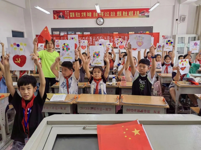 教育学院“蒲公英”暑期支教实践团以线上线下相结合的方式,将音乐、书法、劳动等素质教育课程充分融入中小学生课堂,引领学生扎根中国大地了解国情民情。