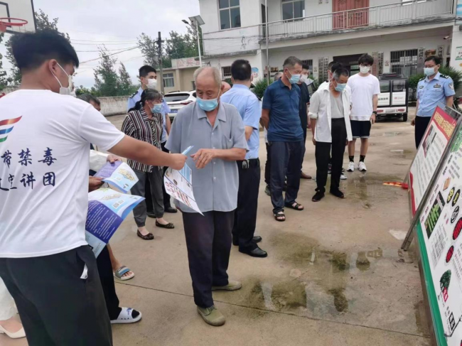 金融学院“红丝带”禁毒防艾暑期社会实践团通过禁毒防艾知识宣讲、发放禁毒防艾宣传单、粘贴红丝带等活动形式,切实提高居民的禁毒防艾意识。