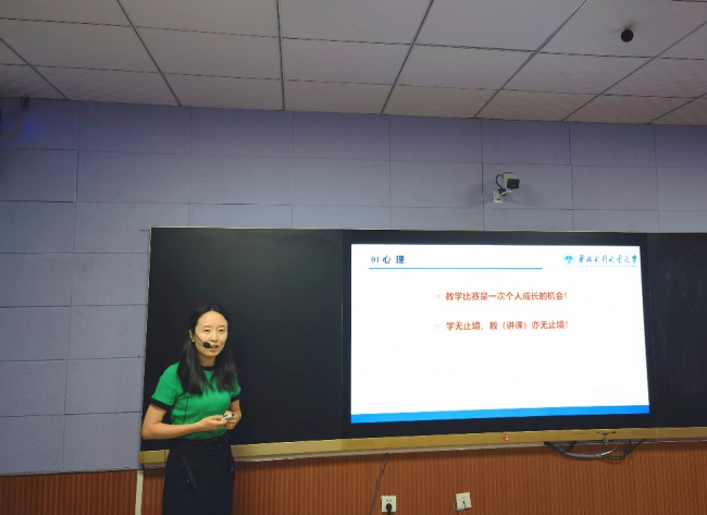 随后,崔欣博士以“如何准备教学技能竞赛”为主题作报告。她围绕“心理”“行动”“注意事项”三个方面深度剖析了教学技能竞赛各个环节的准备工作,强调教学竞赛活动是对参赛教师心理和身体的双重考验;在教学内容上,选题既要有深度又要有广度,且与学科前沿密切结合;在教学设计上,要从耳熟能详的事件引入问题、解决问题、回应问题,形成闭环;在赛前演练上,要反复练习,形成肌肉记忆;在课件制作上,要注重细节,做到每一个字每一个图都有意义,而且风格简洁清爽,图像有层次感,语言清晰洪亮干净准确。
