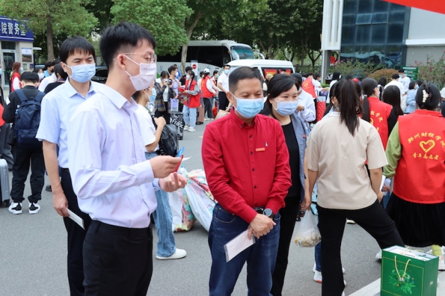 由于自己是学院的“老生”,加上自己还是党员,完成报到后,看到身边一波又一波的新生赶过来报到,王邓菠就萌生了加入学院迎新志愿服务的想法。“三年的大学生活,我对学校已经有了深厚的感情,重新回到郑财,我要把爱留在郑财。”王邓菠兴奋地说。