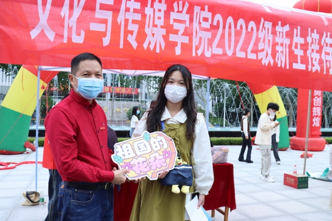 文传学院的迎新现场别出心裁。除此之外,学院还为新生送上其它两份入学礼,一是“见面礼”:“幸会郑财文传——我与校园的第一张合影”,为每一位新生和家长定格下这一美好的遇见。