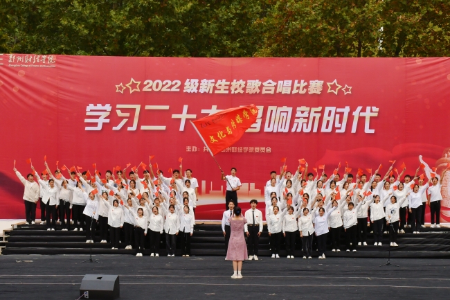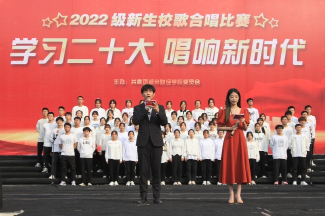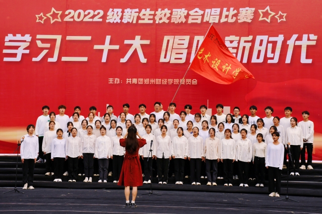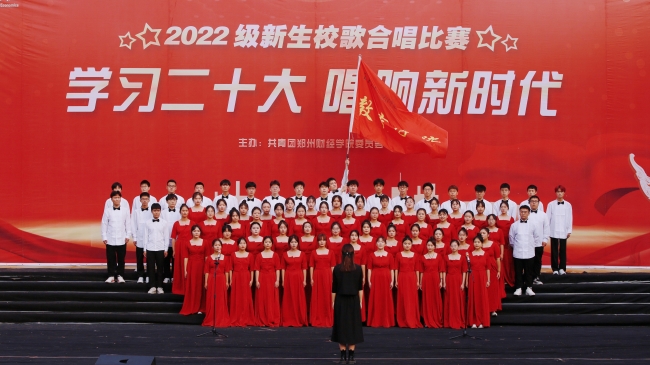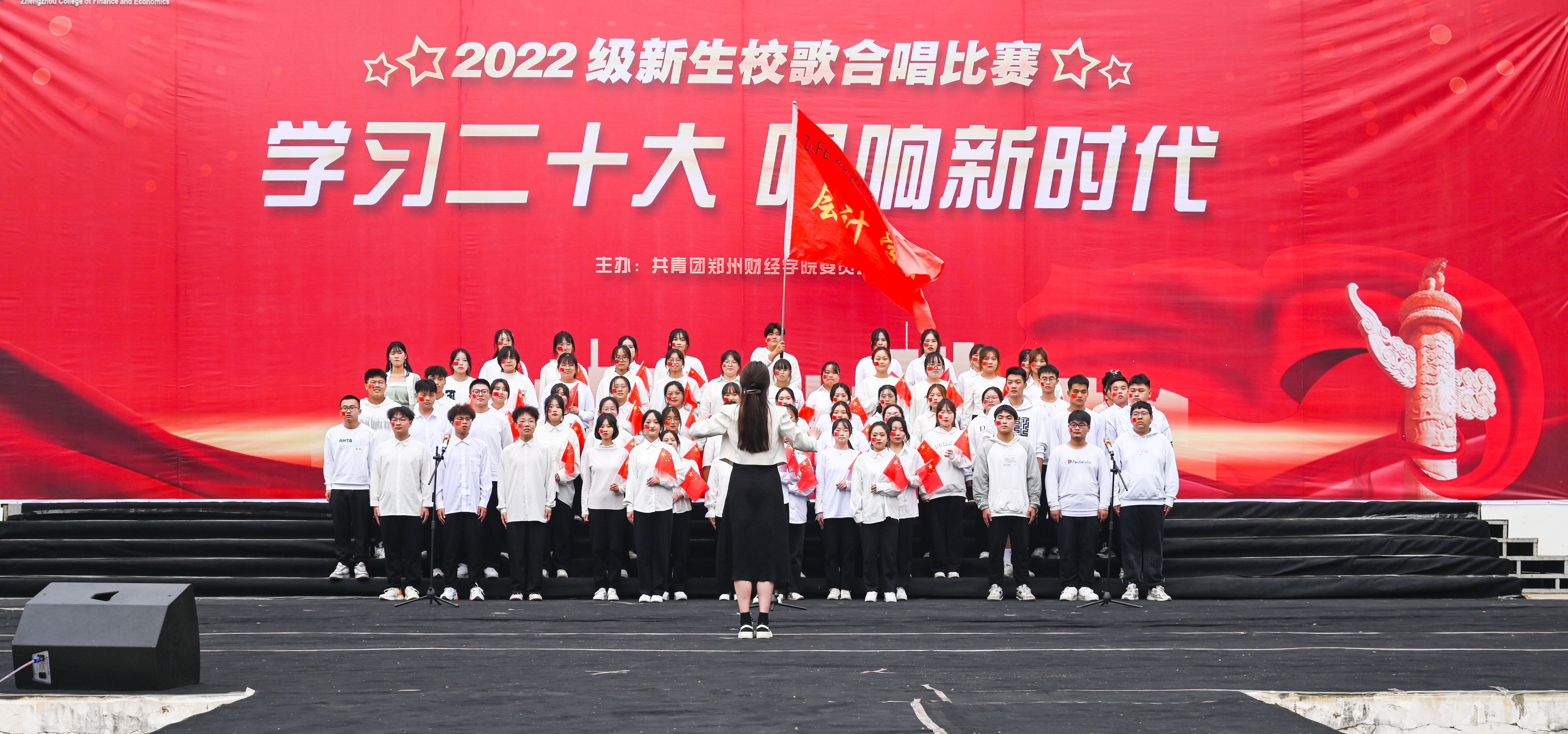 赛场上,各参赛队伍通过演唱一首首镌刻时代印记的歌曲,串起新时代党和国家事业取得的历史性成就、发生的历史性变革。《爱我中华》《歌唱祖国》《国家》等曲目满怀深情地表达了同学们对祖国的热爱;《强军战歌》《保卫黄河》气势恢宏、铿锵有力,展示出郑财学子昂扬向上的姿态;《在灿烂阳光下》《再一次出发》歌颂新时代,表达了青年学生对祖国繁荣富强的美好祝愿。