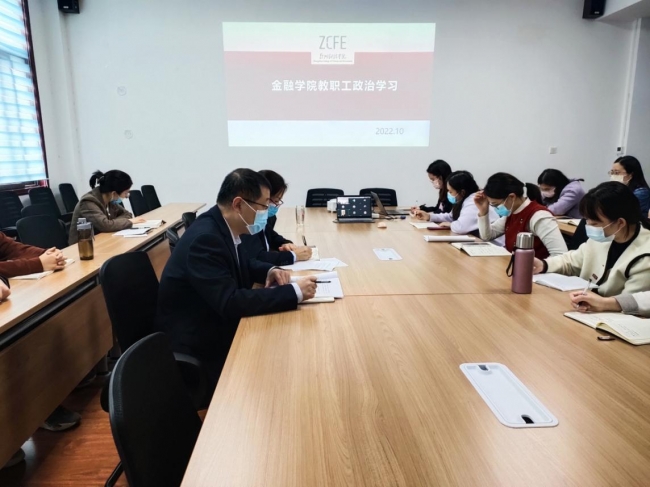 10月30日,金融学院组织全体教师通过线上和线下相结合的方式学习党的二十大精神,常务副校长张胜利参加学习活动,活动由金融学院院长张效梅主持。