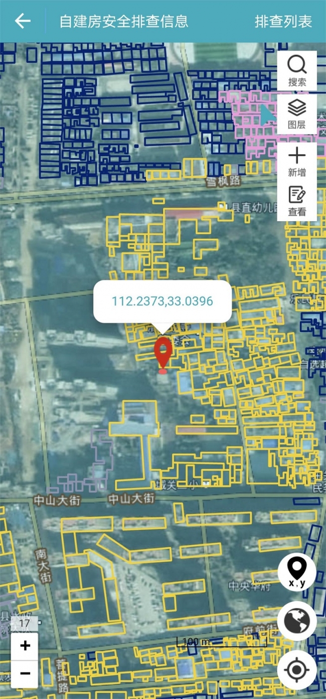 图中黄色图标为穆科固化调研的216户房屋