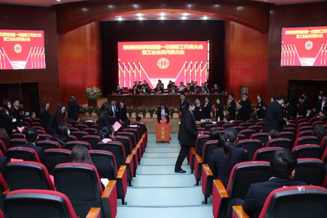 2月16日下午,大会预备会议和主席团第一次会议在图书馆学术报告厅举行,会议筹备组介绍会议筹备情况,说明代表产生和代表资格审查情况,通过大会议程、会议日程安排、主席团成员、秘书长名单、工会委员会和经费审查委员会候选人建议名单,宣布各次大会执行主席名单。