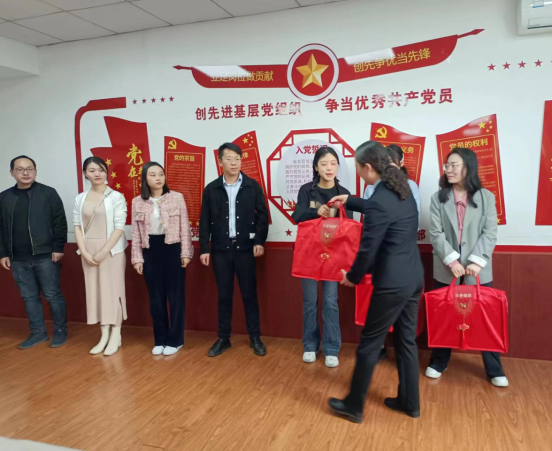 校工会副主席胡瑞芝给新婚教职工发放慰问品