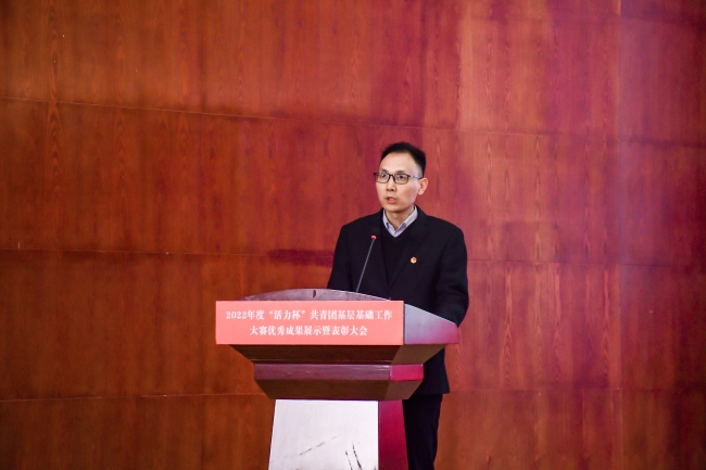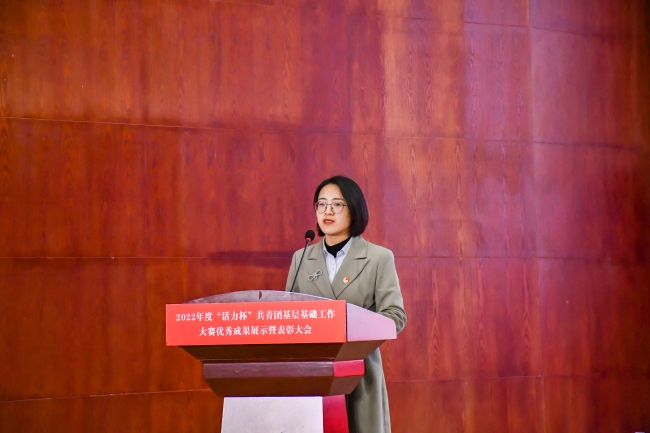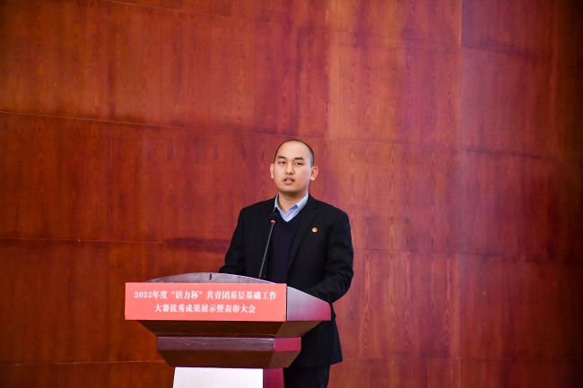 校团委书记周二涛宣读2022年度“活力杯”共青团基层基础工作大赛表彰文件。