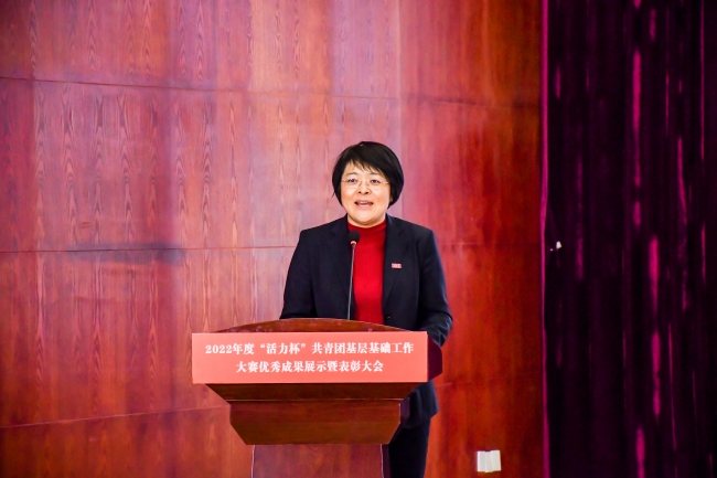 会议最后,副校长陈静作总结发言。她对大赛中获奖的团队、老师以及学生表示祝贺,并指出“活力杯”共青团基层基础工作大赛的举办,有效激发了基层团组织的活力,推动万象城共青团基层基础工作水平不断提升。同时,她还对2023年大赛的开展提出三点希望,一是筑牢思想根基,不断提升认识;二是强化以赛促建,不断提高效能;三是做好宣传推广,不断扩大影响。