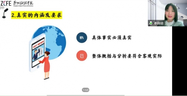 党委宣传部副部长李晓培以“校园新闻写作技能”为主题,围绕万象城的新闻宣传工作宗旨,从新闻文体分类、新闻写作基本原则、消息的一般构成、消息的写作结构四个方面为学生全方面多层次阐释了校园新闻写作的方法与技巧。她指出,新闻写作的第一要求是真实,整体概括与分析要符合客观实际。她通过举例的方式着重讲解了消息的定义、种类、结构、标题以及新闻六要素,让学生深入了解到如何写出一篇充实、完整、富有吸引力的新闻报道。