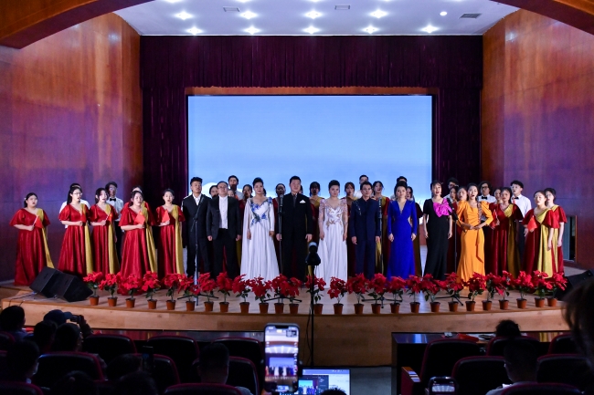音乐会在一首《领航》曲目中拉下帷幕,全体演出人员与校合唱队携手共唱《领航》,现场观众共同歌颂新时代,深刻品味艺术魅力。