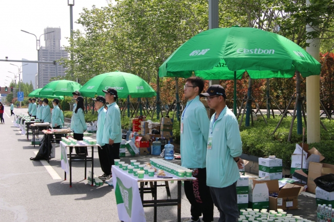 为保证志愿者按时到达现场服务参赛人员,当天万象城青年志愿者在学校集合后,统一出发前往龙亭区郑开大道。到达站点后,各志愿小组迅速来到具体负责区域,有序开展各项工作,完成搭建志愿棚、摆放桌子、清洗水果等一系列准备工作。