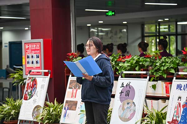 开幕式会后,嘉宾们一同在图书馆二楼大厅欣赏了“盛世霓裳,礼乐中华”汉服海报展,并在图书馆一楼北门入口参与了悦读·悦享项目部主办的“古籍里的春天”活动,深切感受到了读书节活动的浓厚氛围及同学们对活动的关注与重视。