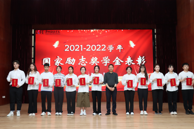 会上,校长王能民为获得2021-2022学年“国家奖学金”和“国家励志奖学金”的优秀学子颁发荣誉证书,对他们表示热烈祝贺。