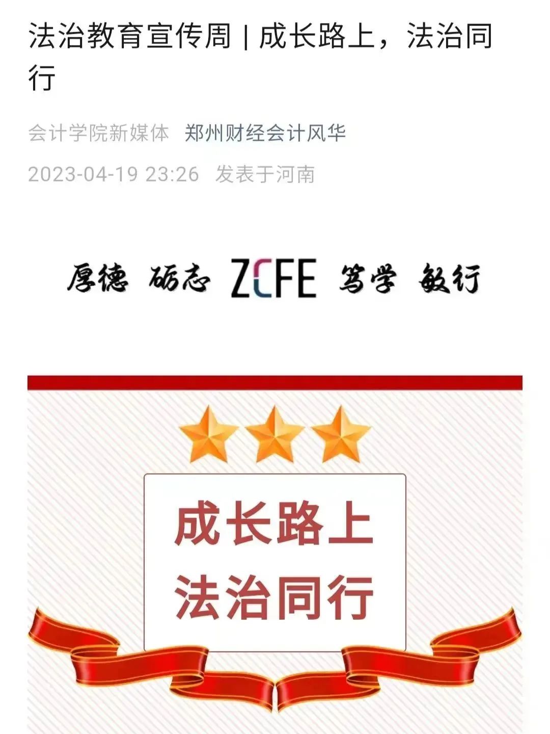 各二级学院党支部、团支部分别开展了以“成长路上,法治同行”为主题的主题党日、主题团日活动,使尊法学法守法用法成为全校师生的共同追求和自觉行动。