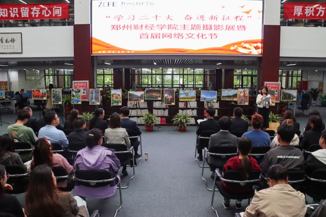 他强调,今年是全面贯彻落实党的二十大精神的开局之年,学习贯彻习近平新时代中国特色社会主义思想主题教育正如火如荼开展。加强学校网络育人工作,推动校园网络文明建设,是贯彻落实习近平新时代中国特色社会主义思想的题中之意,也是学校担负立德树人使命,培养时代新人的重要任务。希望通过举办此次摄影作品展暨首届网络文化节,不断提升校园文化内涵,浓郁网络文明氛围,希望广大师生齐心协力,持续产出更多优质的文化作品,努力打造具有郑财特色的文化品牌,协同奏响郑财思政育人时代强音,大力弘扬向上向善新风,汇聚起郑财师生踔厉奋发、勇毅前行、团结奋斗的磅礴力量,为学校高水平应用型本科院校建设作出更大的贡献。