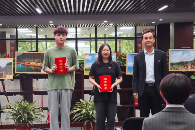 校工会主席张彪宣读了《关于公布庆祝党的二十大胜利召开暨“奋进新征程 建功新时代”主题摄影比赛评选结果的通知》,孟祥云飞、李程馨2位同学的摄影作品获得一等奖,牛肖杰、闰群威等4位师生的摄影作品获得二等奖,焦建伟、廖兰芳等8位师生的摄影作品获得三等奖,教育学院、艺术设计学院、会计学院获得优秀组织奖。