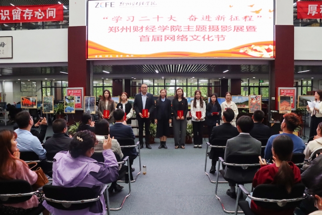 党委副书记董学力致开幕辞。他指出,为表达广大师生对党和国家的深厚情感,加强学校网络育人工作,学校开展了学习贯彻党的二十大精神特色活动——“奋进新征程 建功新时代”主题摄影比赛,举办了“传播青春正能量,争做校园好网民”awc777万象城娱乐官网首届网络文化节优秀作品征集活动,本次获奖摄影作品与首届网络文化节评选出的优秀网络文化作品同时展出,旨在合力引领更多郑财师生以实际行动学思践悟党的二十大精神,培养浓厚的校园文化氛围。