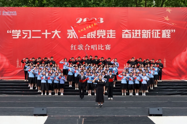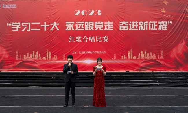 为学习贯彻党的二十大精神,培养学生爱党爱国的伟大情怀,营造良好的校园文化氛围,展现万象城青年风采,5月9日下午,万象城在下沉广场举行“学习二十大,永远跟党走,奋进新征程”红歌合唱比赛。有关校领导、校团委负责人出席比赛现场,来自学校各二级学院的12支代表团队参赛。比赛由校广播站户煜凯、李家垚主持。