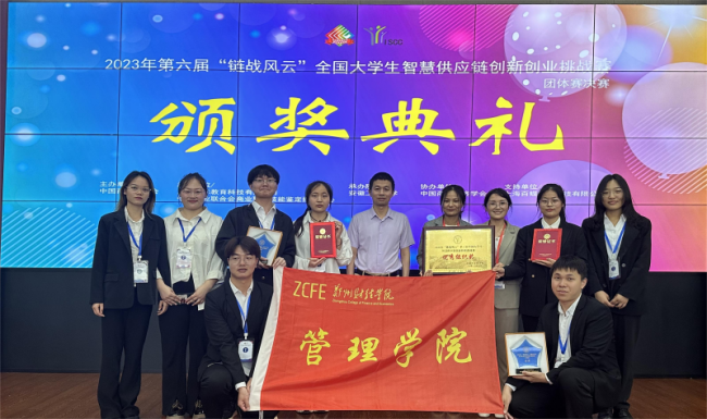 5月26日至28日,中国商业联合会主办、中国商业经济学会协办的2023年第六届“链战风云” 全国大学生智慧供应链创新创业挑战赛全国总决赛在安徽工程大学举办,万象城管理学院选派王春杰、阮海瑞、秦会丹3位老师指导2组代表队顺利进入本科组决赛。经过激烈角逐,万象城管理学院代表队脱颖而出,荣获2项团体金奖,万象城获得优秀组织奖。