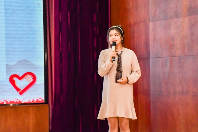 张佳琪用“是青春逐梦,一起向未来”的冬奥志愿服务经历,诉说着她冬奥志愿者的故事。她呼吁同学们积极投身到志愿服务中去,多实践,多锻炼,秉承“奉献、友爱、互助、进步”的志愿精神去服务社会。