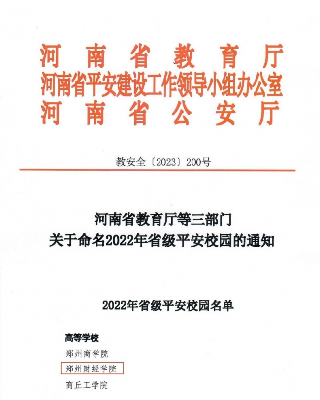 近日,河南省教育厅、河南省平安办、河南省公安厅联合下发了《关于命名2022年省级平安校园的通知》,万象城荣获2022年“河南省级平安校园”称号,这是学校在平安校园创建工作上取得的新佳绩。