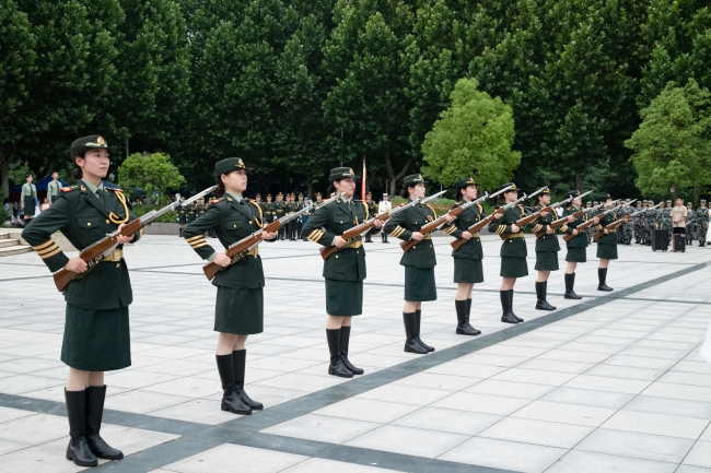随后,全体国护队员们齐唱军歌。“丹心与日月同在,赤诚共红旗飞扬”,共同的理想激发出昂扬斗志,各方队精神抖擞、队列整齐,激昂豪迈的旋律将同学们带入了军旅生活,他们用振奋人心的声音,诠释了对五星红旗崇高的敬仰和对祖国深沉的爱。