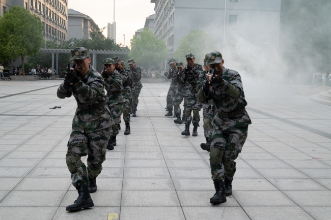 从转体到正步,摆臂、踢腿、齐正步互换,每一个动作都行云流水,整齐有序的队列,彰显出团结的力量;直拳横踢、抱腿顶摔,从擒敌到格斗,每一次出击都锐不可当;横刀立马、剑指长天,从日常训练到汇报表演,每一滴汗水都体现出国旗护卫队对国旗的尊重与热爱。一身戎装显风采,英姿飒爽少年郎。一系列熟练动作的背后,是国旗护卫队每位队员汗流浃背和咬牙坚持的努力。